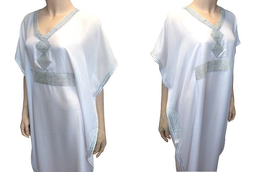 Belle gandoura traditionnelle marocaine, entièrement brodée à la main par des artisans marocains qualifiés.