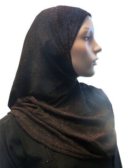 #TITRE-EN: Black hijab with orange glitter #DESCR-EN: Nice black hijab with orange glitter. #TITRE-DE: Hidschab Schwarz mit orangen Pailletten #DESCR-DE: Schöner schwarzer Hidschab mit orangen Pailletten.