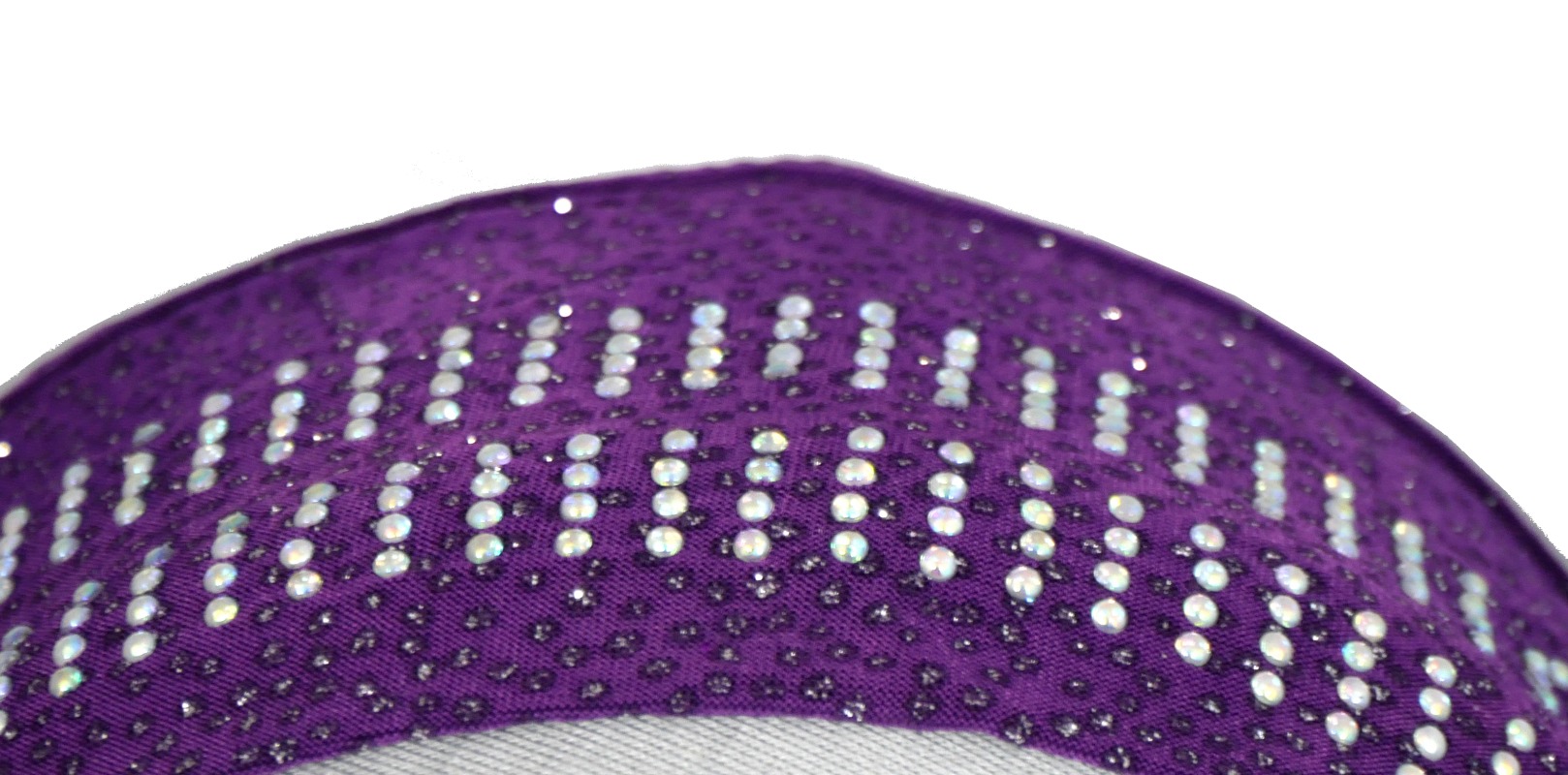 Hijab 1 pièce violet pailleté décoré de strass. Le tout accommodé de trois boutons de chaque coté ainsi que de trois fines chaines argentées.