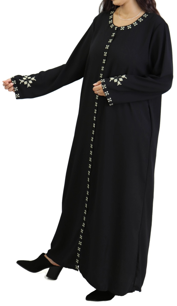 Robe longue arabe style oriental à capuche brodée avec strass pour femme - Couleur Noir - REF. 33677 (29.00 €)