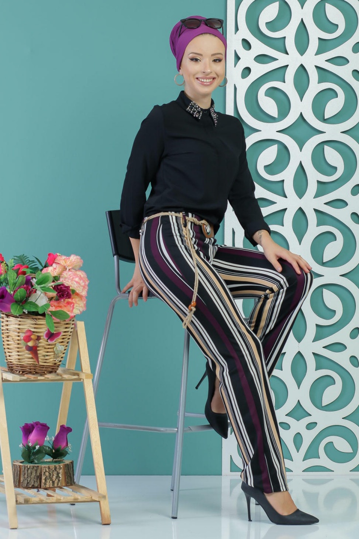 Ce pantalon rayé ultra moderne qui sort de l'ordinaire avec sa matière confortable et fluide se portera aussi bien à la maison qu'à l’extérieur. Les différentes couleurs qui le composent vous permettront de l'assortir sans problème.