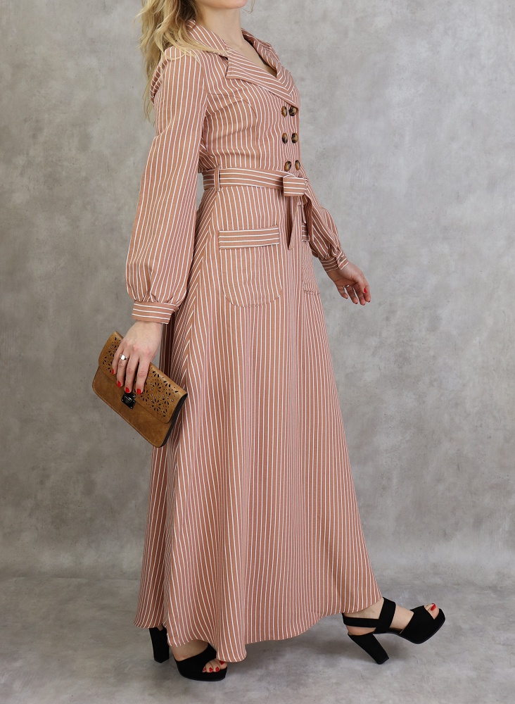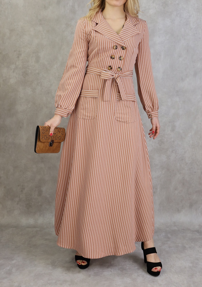 Robe longue à rayure de couleur caramel Vêtement & Accessoire