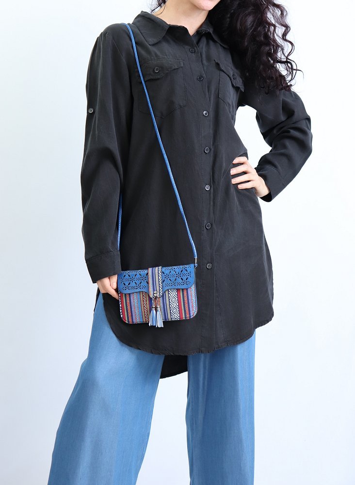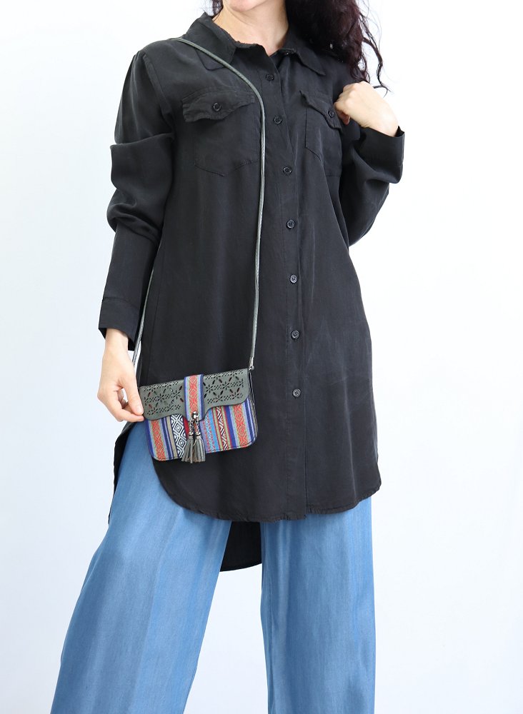 Chemise ample décontractée avec fermeture boutons et poches à rabat sur le devant, manches retroussables. Tissu très agréable à porter en toutes saisons.