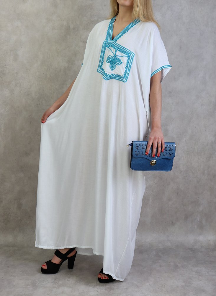 Belle gandoura traditionnelle marocaine, entièrement brodée à la main par des artisans marocains qualifiés.