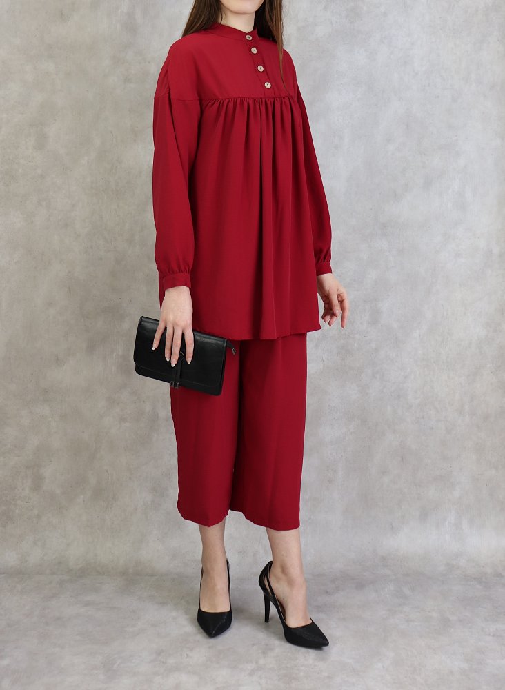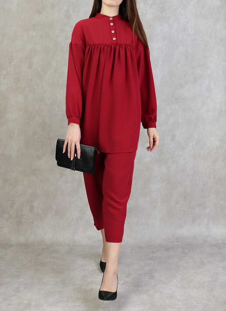 Ensemble 2 pièces ultra chic, tunique ample, manches longue finitions boutonné, col officier, patte de boutonnage, Pantalon large avec plis coupe droite, on aime son tomber irrésistible, fermeture zippée sur le coté..