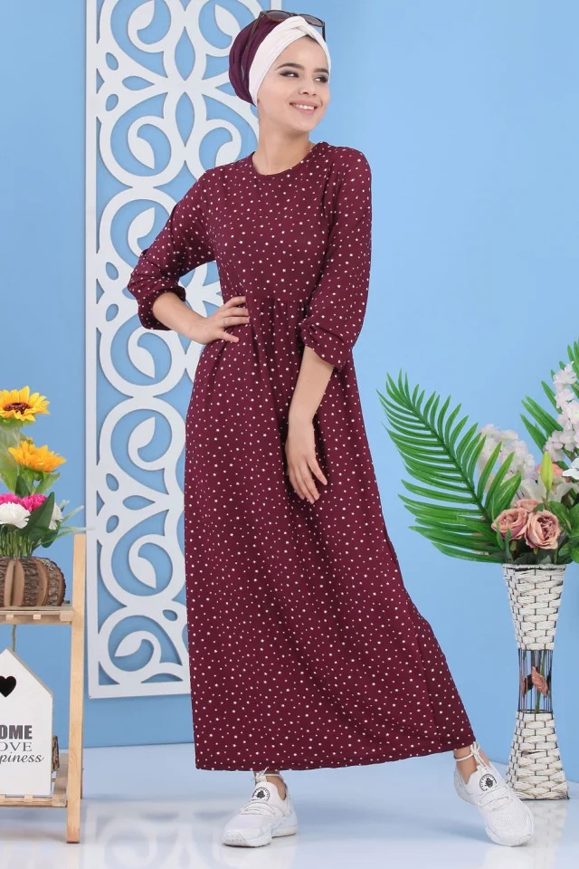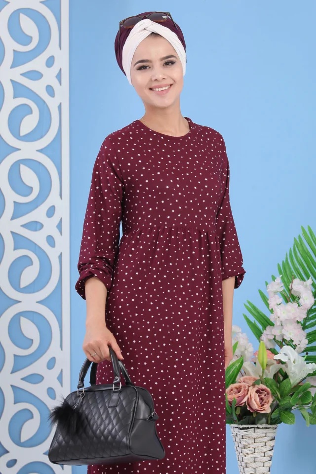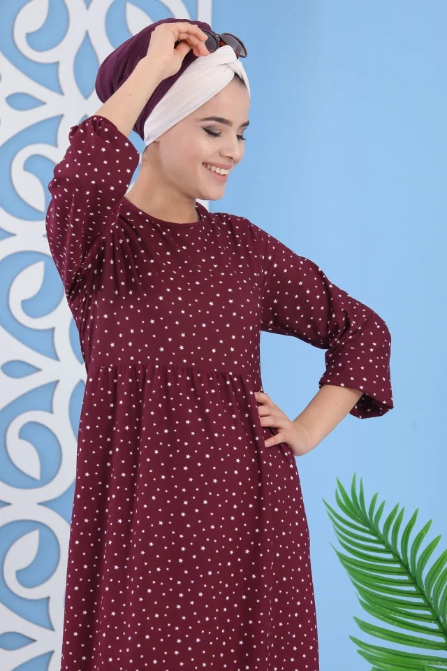 Robe longue, col rond, manches finition élastiques aux poignets, taille froncée élastique, tissu fluide. Cette robe avec ses motifs étoilés sort de l'ordinaire, vous l'aimerez pour son coté original et pas cher.