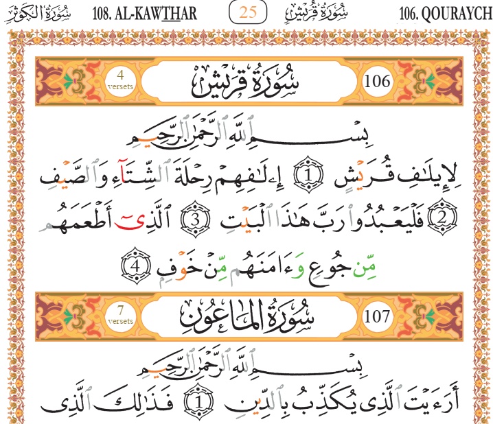 Contient également sourate Al-Fâtiha, le début de Sourate Al-Baqara et Âyat Al-Koursî (Le verset du Trône).