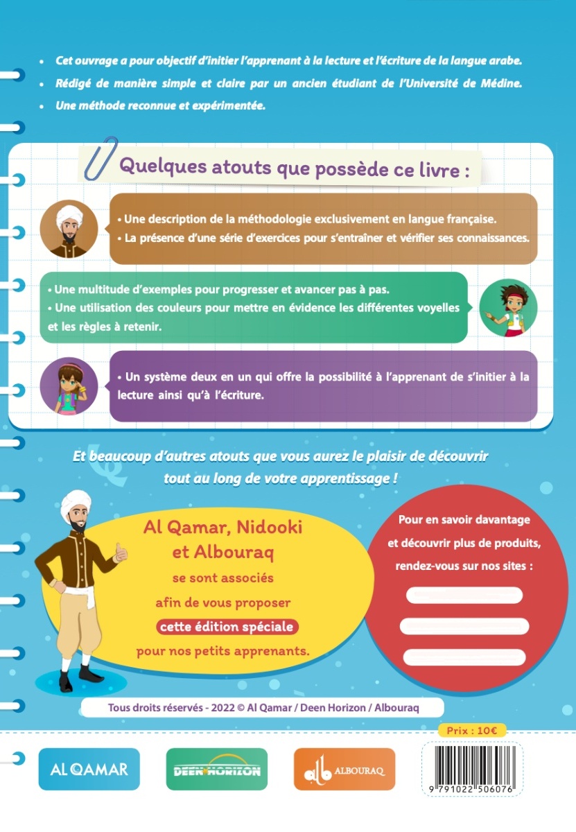 A travers ce livre, vous apprendrez les bases de l'arabe avec une multitude d'exercices de lecture et d'écriture. Vous trouverez des fiches d'évaluation pour mesurer si les leçons sont acquises. C'est un livre incontournable pour ceux qui souhaitent apprendre l'arabe efficacement ! La langue arabe est un outil essentiel pour accéder aux sciences islamiques. Son apprentissage est accessible à tout âge mais la méthode employée est un élément déterminant pour la réussite de l'étudiant.
