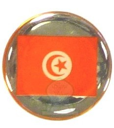 Mini-badge autocollant drapeau tunisien (Tunisie) sur fond argenté.