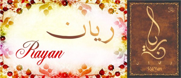 Signification (sens) du prénom Rayân (Rayan) رَيَان: Celui qui a une belle apparence, admirable. Plein, rebondi.