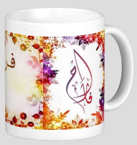 Mug avec le prénom "Farah" calligraphié en arabe (فراح).