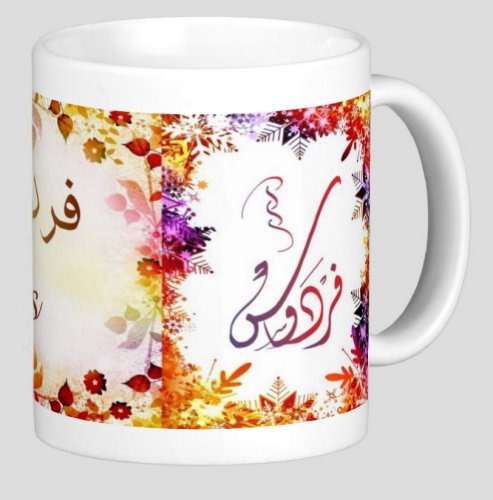 Mug avec le prénom "Firdaous" calligraphié en arabe (فردوس).