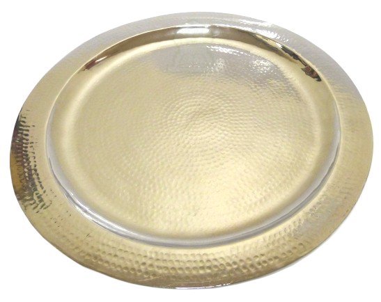 Grand plateau marocain rond de fabrication artisanale en metal argente cercle et finement martele - diametre 40 cm
