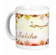 Mug avec le prénom "Rached" écrit en français, en arabe (راشد) et calligraphié de façon artistique en arabe sur la partie droite.