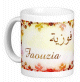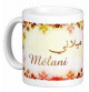 Mug avec le prénom "Samia" écrit en français, en arabe (سامية) et calligraphié de façon artistique en arabe sur la partie droite.