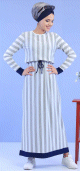 Robe longue moderne bi-couleur pour femme (Vetement musulman hijab pas cher et mastour) - Couleur bleue marine et blanc - REF. 32504 (19.90 €) - En Promotion à 16.90 €