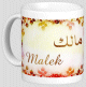 Mug avec le prénom "Tayeb" écrit en français, en arabe (طيب) et calligraphié de façon artistique en arabe sur la partie droite.