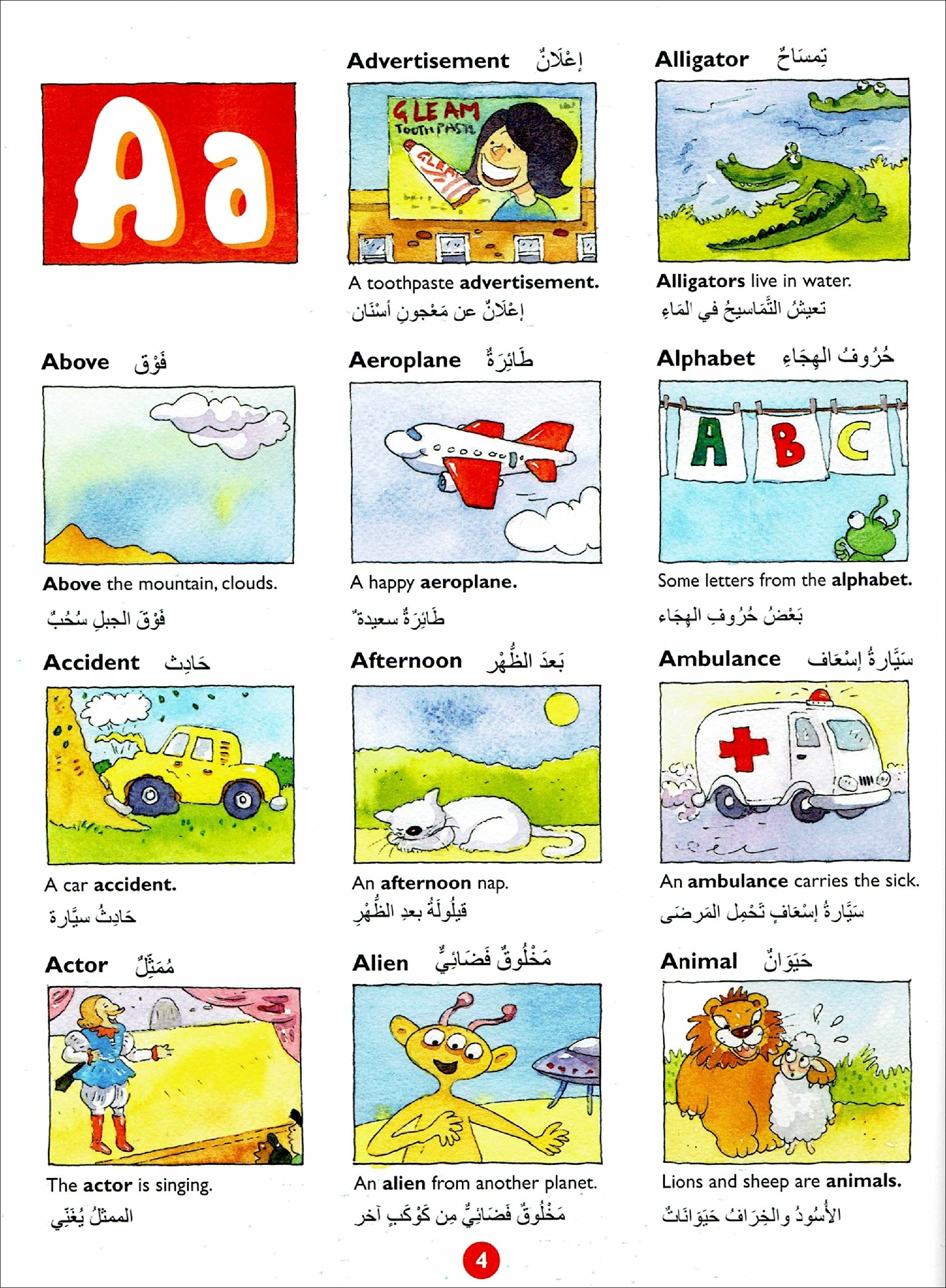 This book includes over 500 commonly used words and their helpful definitions of them in English and Arabic. These are accompanied by colourful and amusing illustrations of familiar subjects to better understanding.