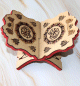 Grand porte Coran pliable pour faciliter son rangement, magnifiquement sculpté dans du bois poli, finition vernissage et décorations sous forme d'étoiles en cuivre.