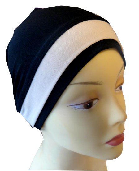 Bonnet extensible agrémenté d'une bande de tissu à l'avant pour habiller vos hijabs avec style et modestie 24 cm.