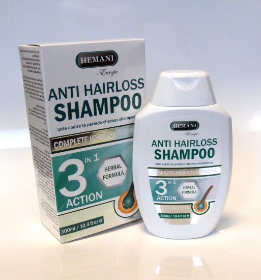 Shampoing à base de plantes anti-chute de cheveux avec formule trois en un. Fabriqué en Europe.