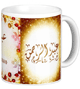 Mug avec le prénom "Awatef" écrit en français, en arabe (عواطف) et calligraphié de façon artistique en arabe sur la partie droite.