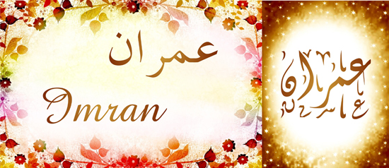 Signification (sens) du prénom ‘Imrân (Imran) عِمْرَان: Construction, peuplement. ‘Imrân, père des Prophètes Mûsâ (Moïse), Hârûn (Aaron) et de Maryam (Marie). ‘Imrân Ibn Husayn (m. 52 A.H), célèbre compagnon du Prophète Muhammad.