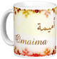 Mug avec le prénom "Imrane" écrit en français, en arabe (عمران) et calligraphié de façon artistique en arabe sur la partie droite.