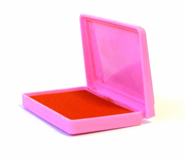 Tampon encreur rouge (10 x 7 cm) à utiliser par les enfants ou les professeurs à l'école.