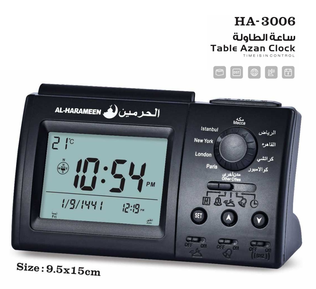 Large choix d'horloges pour la maison ou la mosquée avec appel à la prière et calcul automatique des heures des 5 prières.