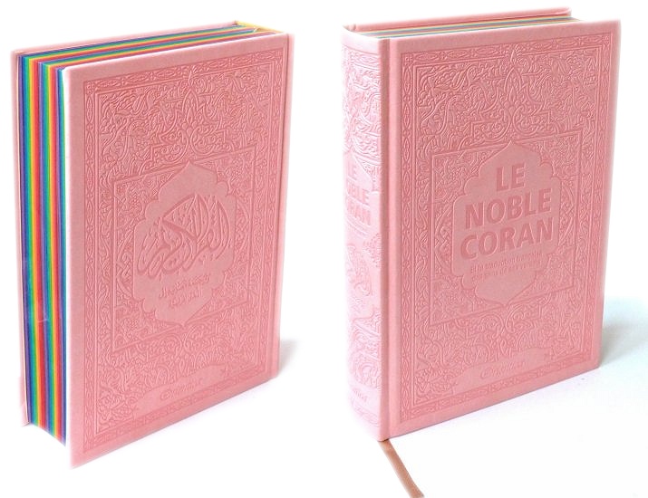 Le Saint Coran en langue arabe + Transcription phonétique et Traduction des sens en français - Edition de luxe (Couverture en cuir couleur rose clair) - REF. 22164 (25.90 €)