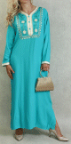 Robe noire longue avec très belle broderies autour du col en couleur et paillettes argentées. Manches évasées brodées.