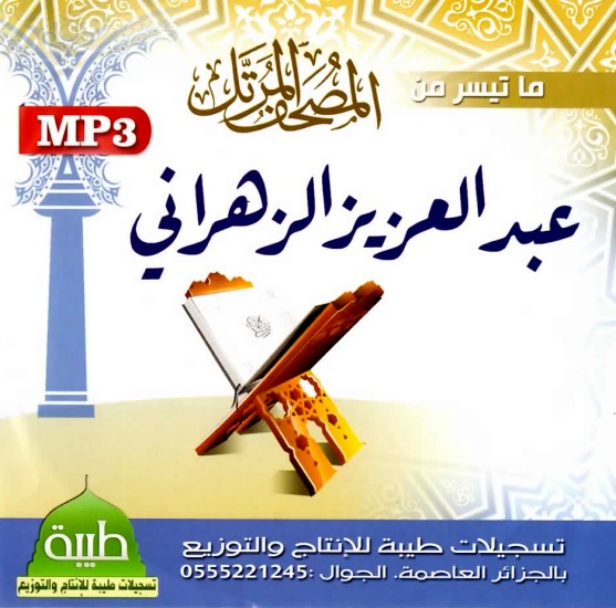 Le Saint Coran complet par cheikh Abdulaziz Al-Zahrânî (CD MP3).