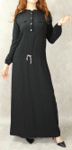 Robe longue boutonnée avec broderie et ceinture (Vêtement Hijab & Modest Fashion pour femme) - Rayures couleur noir - REF. 35995 (29.00 €)