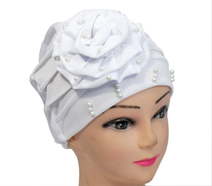 Bonnet perlé avec une large fleur sur le côté.