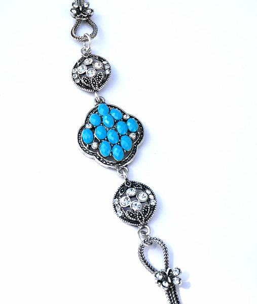 Bracelet artisanal marocain avec des pierres sous en couleur bleu, exclusivement pour femmes.