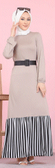 Robe longue bi-matière à rayures fluide pour femme (Vêtements Modest Fashion modernes) - Couleur taupe - REF. 33964 (25.00 €)
