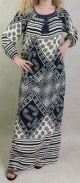 Robe marocaine très longue et large bi-couleur Bleu et Blanc avec broderies - REF. 30891 (29.00 €)