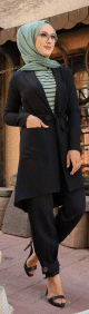 Kimono croisé avec bordures noires et dentelle. Longueur plus importante à l'arrière.