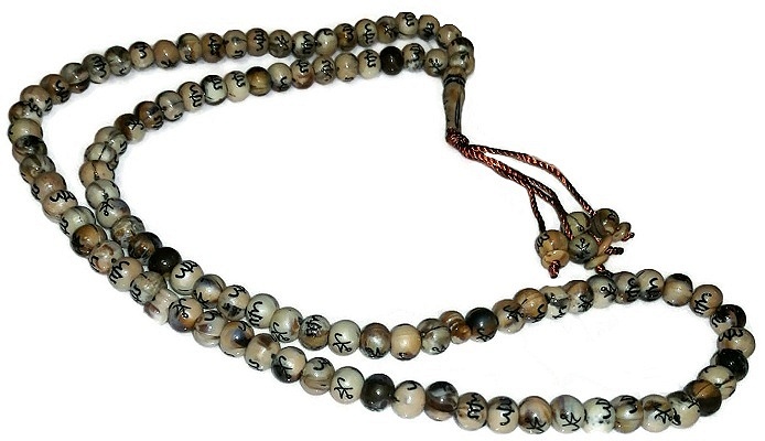 Grand Chapelet "Sebha" 99 grains couleur marbrée marron clair avec le Nom d'Allah et du Prophète sur chaque grain - REF. 36209 (4.90 €)
