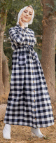 Robe longue, manches longues, lien de serrage au niveau de la taille. Avec sa matière fluide et sa coupe droite, elle est idéal pour avoir un look décontracté.