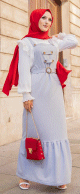 Robe bretelle (Salopette ) et sa ceinture assortie pour femme (Vetement hijab moderne en ligne) - Couleur gris clair chiné - REF. 33850 (25.00 €)