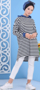 Tunique à rayures noires avec capuche de couleur bleu pour femme - REF. 30476 (19.00 €) - En Promotion à 15.00 €