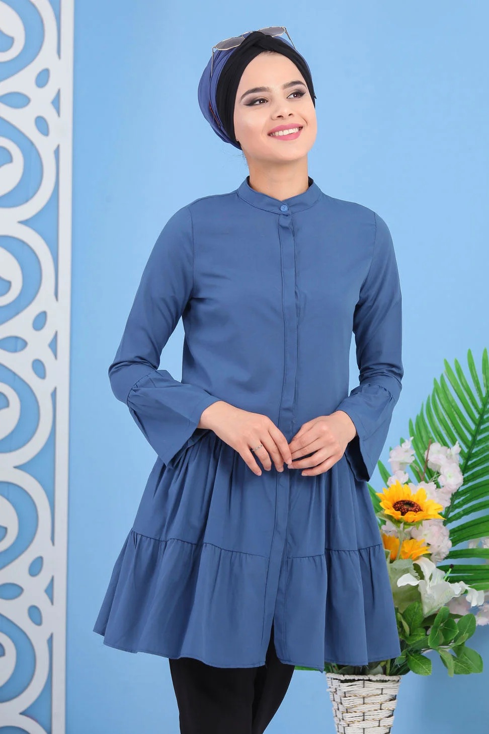 Tunique ample style sweater avec capuche (Tenue femme moderne et sport pour hijab) - Couleur bleu - REF. 37576 (28.00 €)
