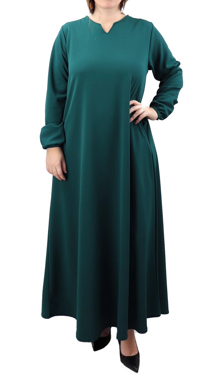 Robe simple longue et large evasee (grande taille) pour femme - Couleur Vert fonce