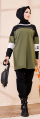 Tunique ample style décontracté et sport (Tenue Hijab moderne) - Couleur kaki - REF. 35502 (25.00 €) - En Promotion à 19.90 €