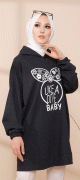 Tunique avec capuche (Boutique Vetement Moderne Hijab) - Couleur noir - REF. 37721 (26.00 €) - En Promotion à 19.90 €