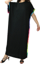 Robe large noire avec broderies et petits pompons multi-couleurs (100 % coton) - REF. 29061 (29.90 €)