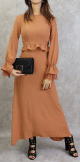 Robe longue fluide casual évasée à volants pour femme - Couleur marron caramel - REF. 31784 (32.00 €)