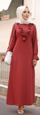 Robe longue boutonnée avec ceinture pour femmes (Vêtements style habillé pour hijab) - Couleur rouille - REF. 36618 (32.00 €)